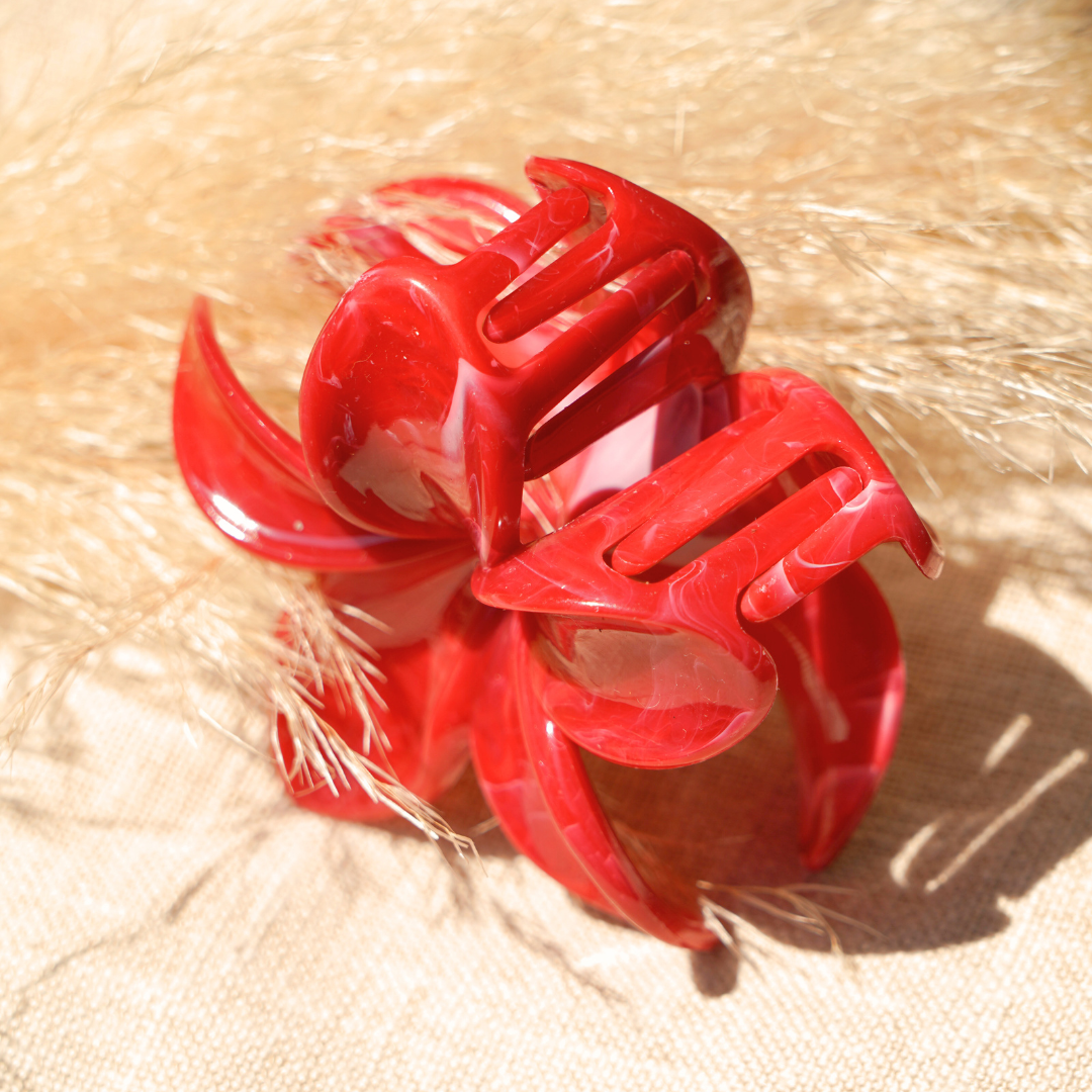 Barrette modèle ‘Tiaré Rouge’. Mettez de la couleur et du fun dans vos coiffures avec la barrette Tiaré rouge ! Légère et colorée, cette barrette en forme de fleur est idéale pour sublimer vos cheveux en toute saison, que ce soit en été ou en hiver. Sélectionnée avec soin en interne pour son côté tendance et original, elle apporte une touche de fraîcheur et de style à vos jolies chevelure.